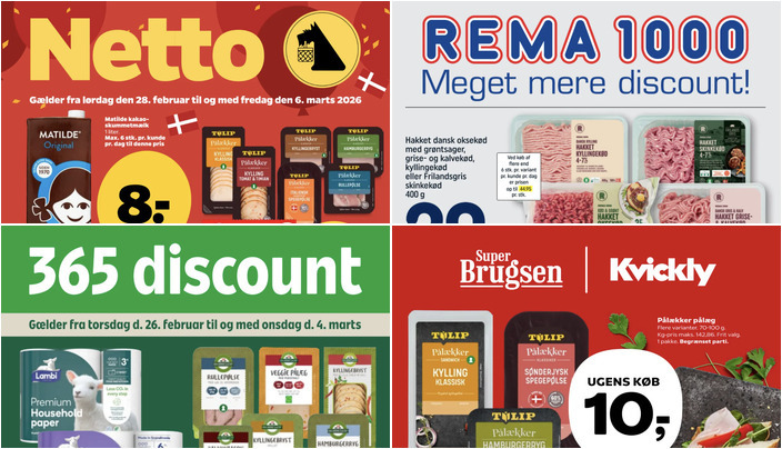 Kvickly har et godt tilbud på Pålækker pålæg i flere varianter, herunder Kylling Klassisk og Sønderjysk Spegepølse, til kun 10 kr. pr. pakke. Tilbuddet gælder fra fredag den 27. februar til torsdag den 5. marts.